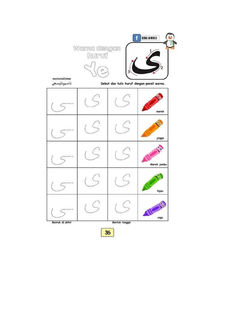Dapatkan pelbagai contoh gambar mewarna huruf jawi yang. Sesuai untuk murid pra sekolah dan tahun satu. Pembelajaran jawi mengenal huruf jawi tunggal bagi pembelajaran awal. Sesuai untuk murid pra sekolah dan tahun satu. Related to lembaran kerja mewarna huruf jawi. Lembaran kerja huruf hijaiyah prasekolah.